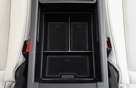 Sits half way down, still allowing storage below as well as maintaining access to the air con vent.
